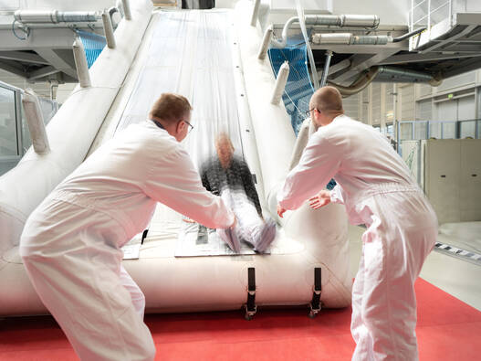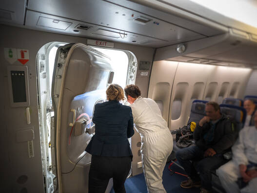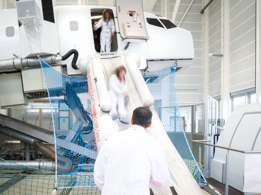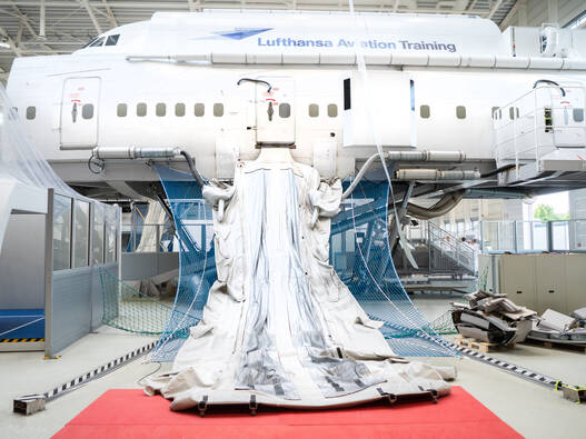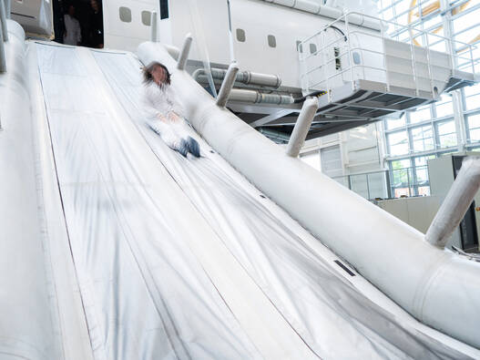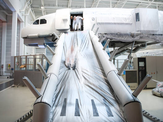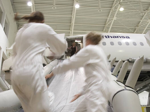 Eines der Highlights auf Ihrem Flug ist – je nach gewähltem Modul – die Evakuierung über die Notrutsche des Flugzeugs. Wir bieten Ihnen drei Module an, die in der Dauer und Intensität variieren: